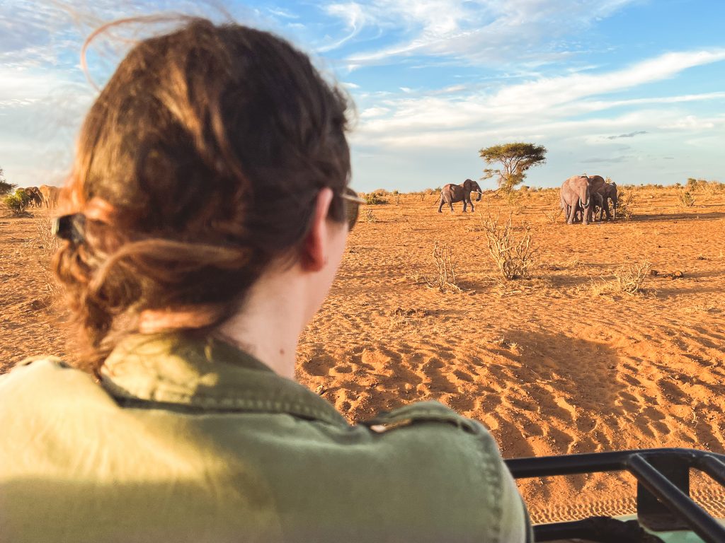 Wir übernachteten die erste Nacht in unserem Hotel am Strand, am morgen wurden wir abgeholt und in unsere erste Safari-Louge gebracht. Ich habe es geliebt. Wir fuhren stundenlang mit einem Toyota Land-Cruiser auf den Straßen von Kenia und sahen die farbenfrohen Häuser der Einheimischen. Ich fühlte mich wie in den alten Filmen, es war ein eigenes Zelt mit einem Holzgestell und einer Veranda von wo aus man einen Blick über den Safari-Park hatte. Das Severin Safari Camp befindet sich direkt in dem Safari-Park Tsavo West. Am frühen Morgen des nächsten Tages lief eine Herde Zebras mit ihren Jungen direkt zwischen den Zelten der Lodge hindurch, ein unvergesslicher Moment. Unsere Reise ging weiter in die Ol Tukai Lodge Amboseli. Im Amboseli Nationalpark sahen wir ein Giraffenbaby, zumindest glaubten wir, dass es eins war, es waren jedoch Zwillinge . Der dritte Park war der Tsavo Ost, Wir übernachteten hier in der Ashnill Aruba Lodge. Von dem Pool aus beobachteten wir in der Ferne einen Sandsturm.