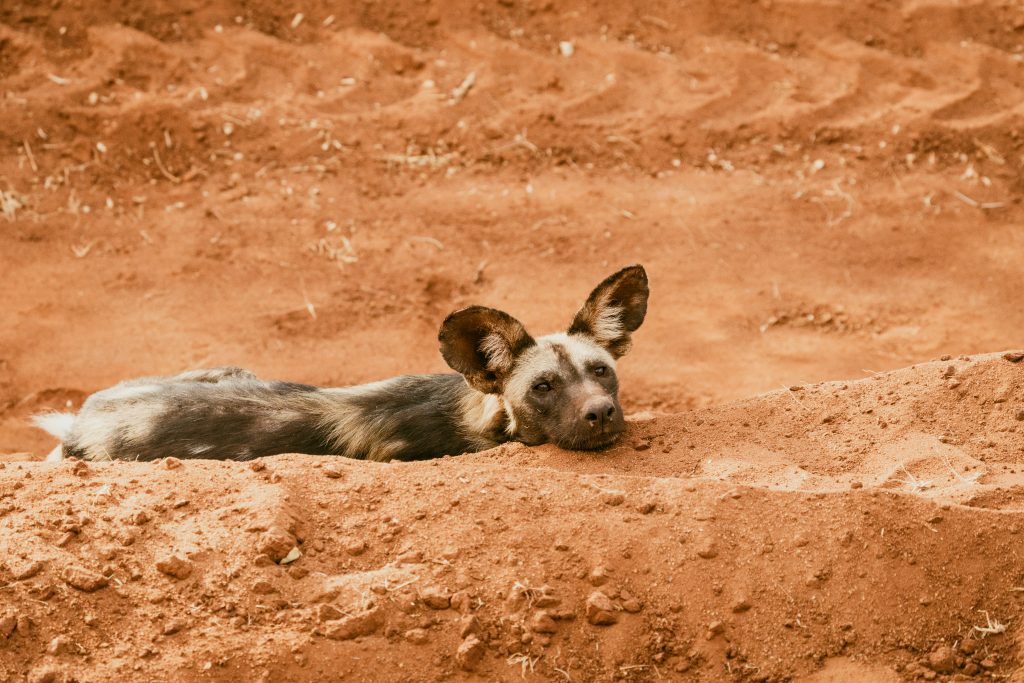 Zum ersten Mal seit Jahren waren die Wildhunde im Park gesichtet worden und wir fuhren auf direkten Weg dort hin. Sie lagen direkt neben der Straße und wir waren so nah, dass ich sie beinahe mit Händen hätte greifen können. Es waren wunderschöne Tiere mit riesengroßen Fledermausohren und gepunktetem Fell. Es war eine große Herde von über 10 Hunden die sich in dem Schatten ausruhten oder auch Jungtiere die miteinander spielten. Wir beobachteten sie eine Ewigkeit und fuhren dann zufrieden weiter.